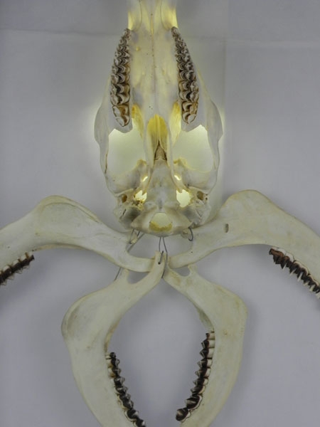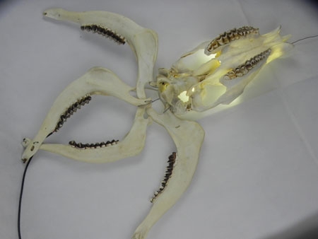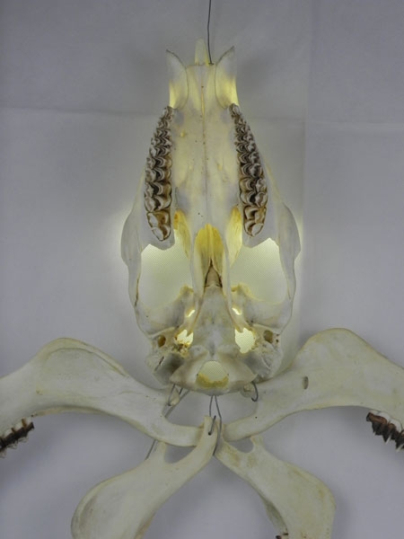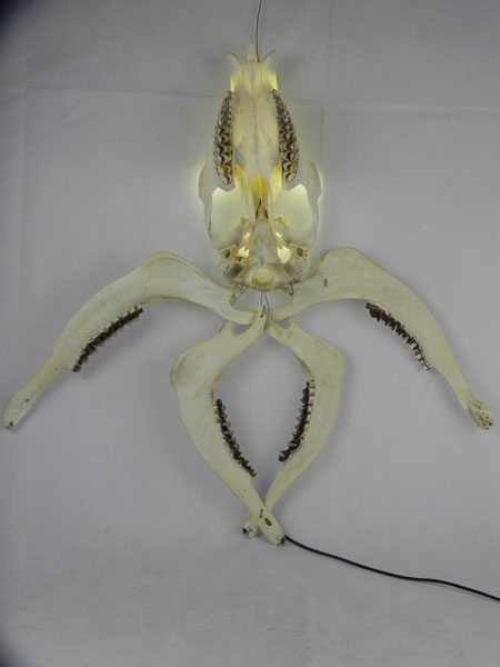 Oiseau préhistorique avec morceaux de crâne. Applique lumineuse.
