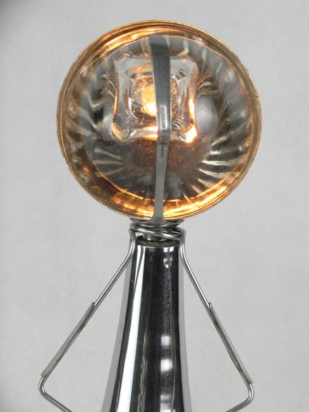 Matières: métal patiné, inox, verre.
