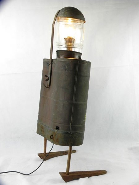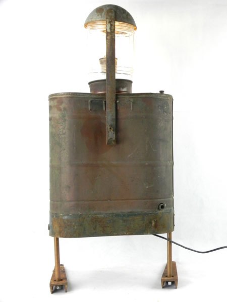 Scaphandrier avec pulvérisateur en cuivre « l’Européen ». Assemblage d’un gros bocal, une louche géante et deux pièces en fonte pour pieds.