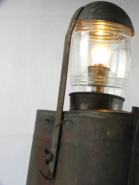 Assembly light flashlight and box in antique printed metal, brake foot bike.