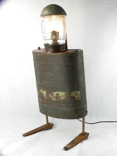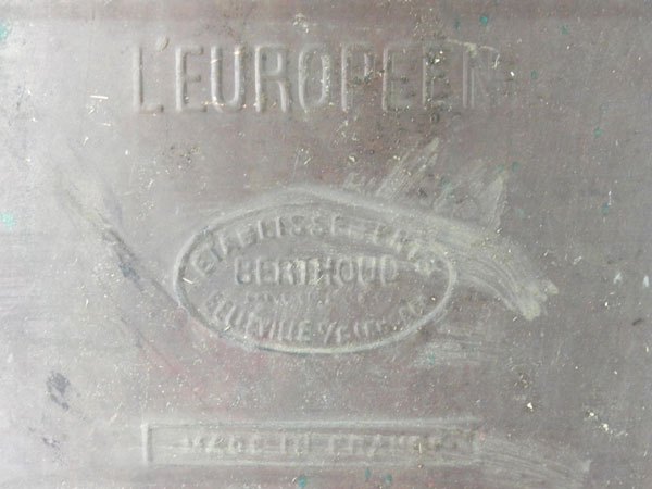 Diving suit with copper sprayer « the European ». Assembly of a big jar, a giant ladle and two pieces of cast iron for feet.