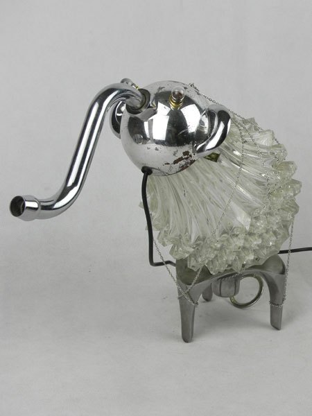 Funny animal to trunk with glassware. Assembly of a chandelier glass, a sports cup, a tap, two handles, a pedestal.