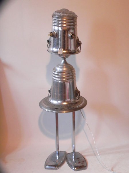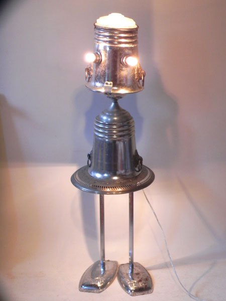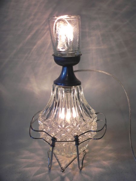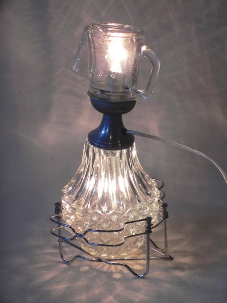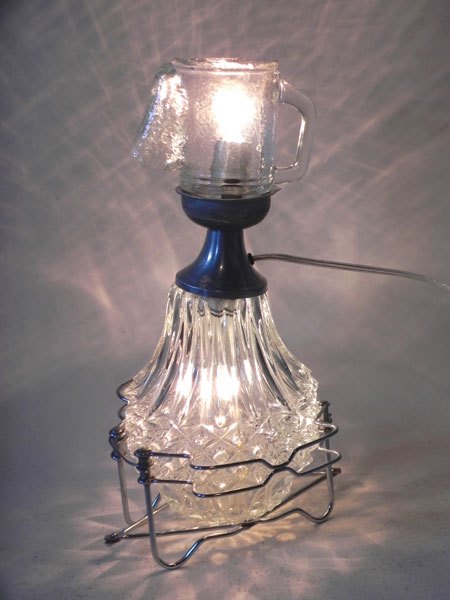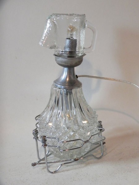 Détournement de verre assemblage de verrerie et broc. Personnage lumineux.