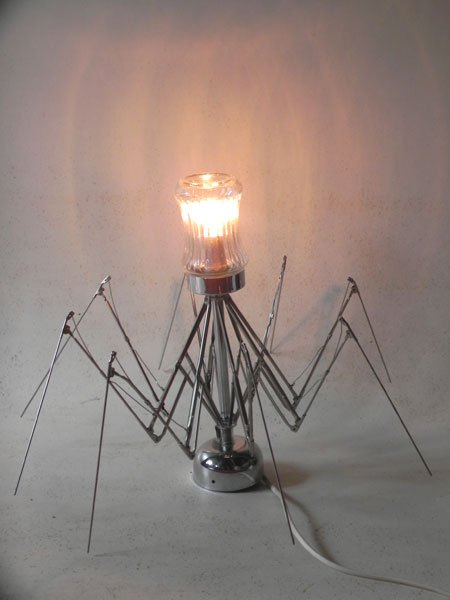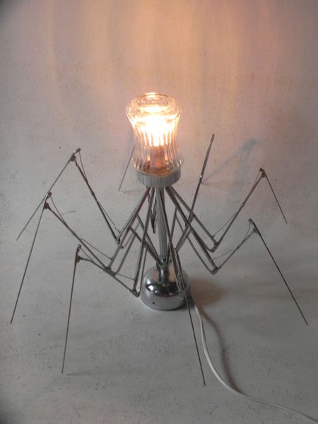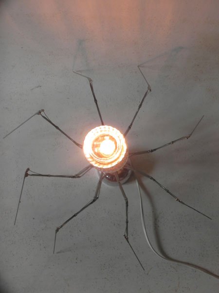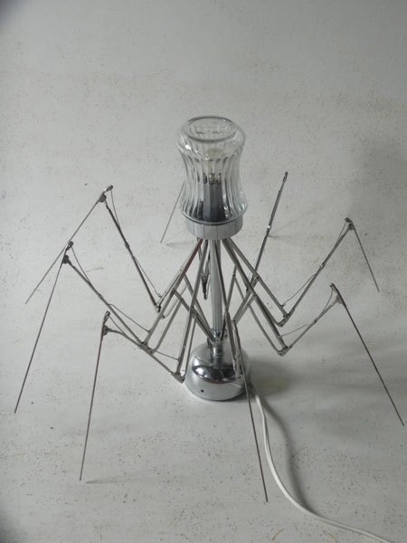 Sculpture lumineuse araignée parapluie avec un sucrier.