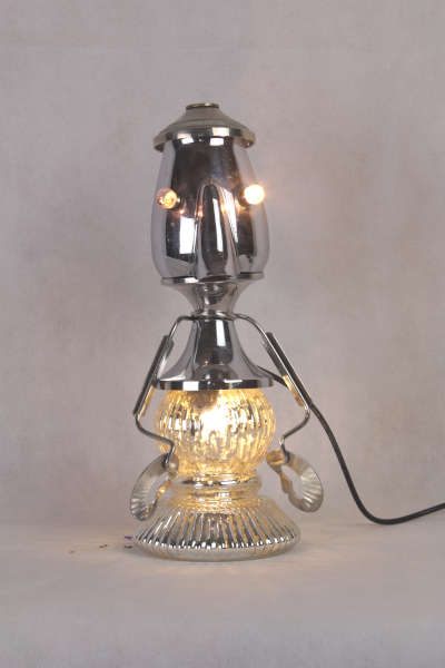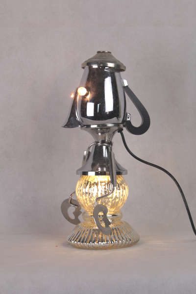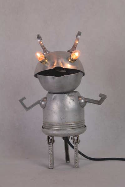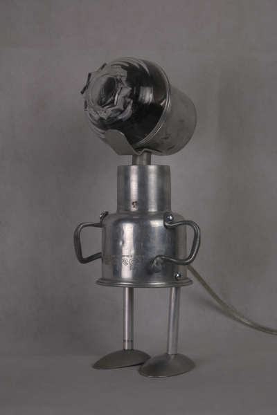 Personnage aluminium avec des éléments de cuisine