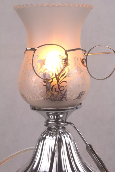 Composition: verre de lampe avec motifs sablés, éléments de coupe de sport, pince à escargot, paire du lunette.