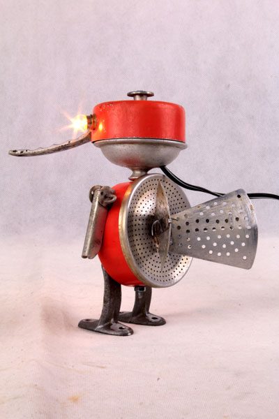 Composition: timbale et louche de dinette vintage, ustensile de cuisine, élément alu .