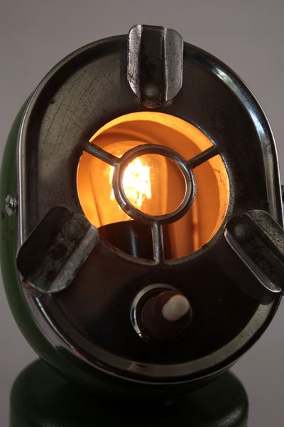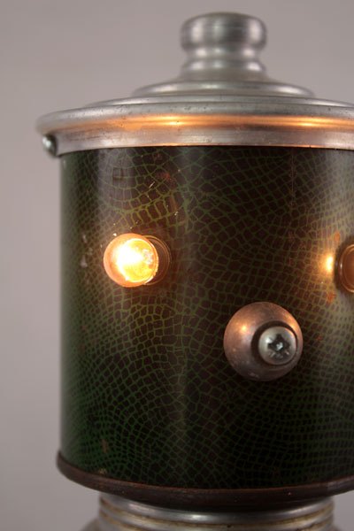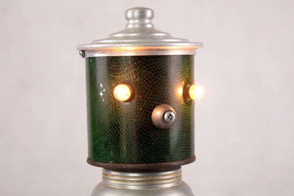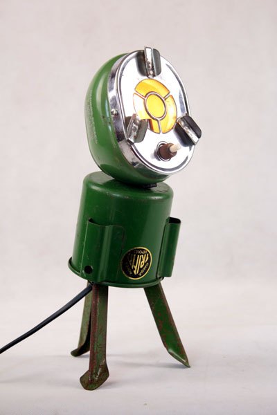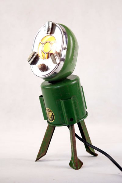 Assemblage lumineux d’un cendrier et trépieds. Lampe récup verte avec interrupteur.
