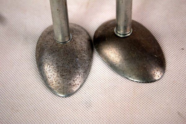 Personnage en aluminium assemblage d’une timbale, un plat, une casserole, deux moules et un manche.