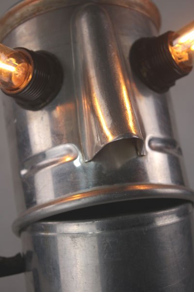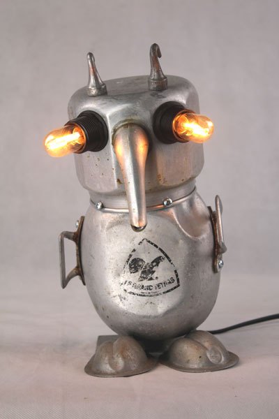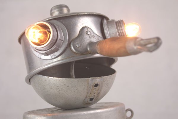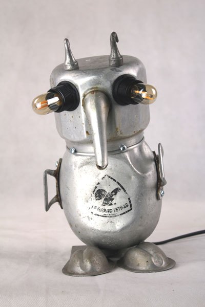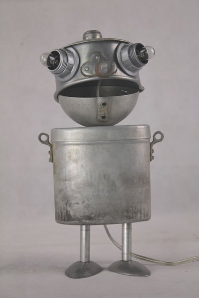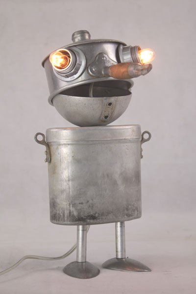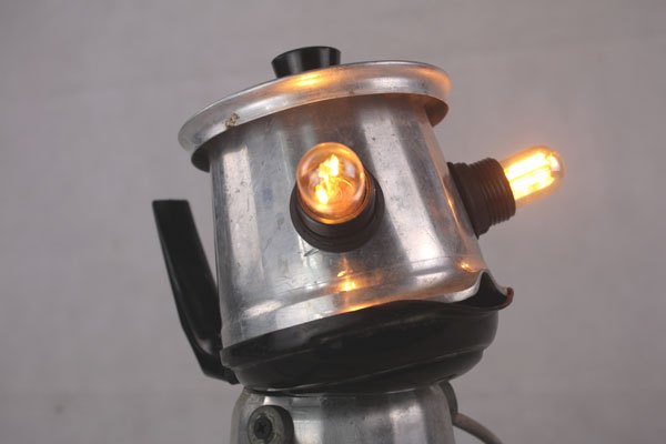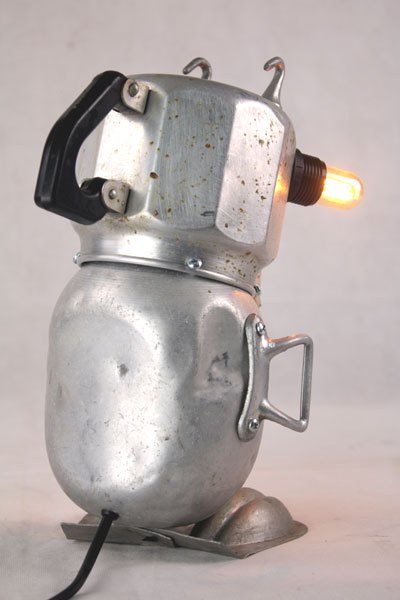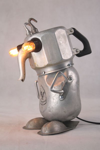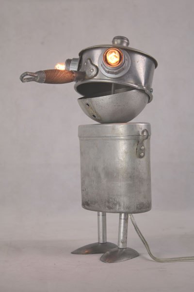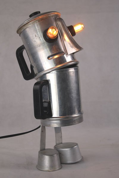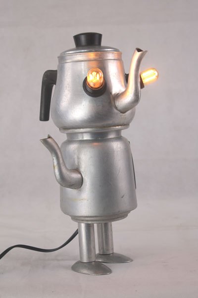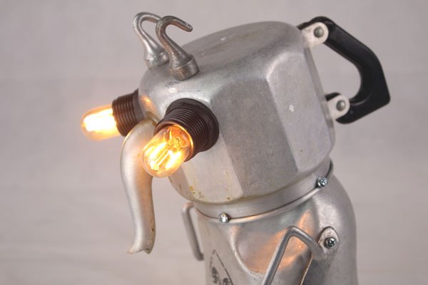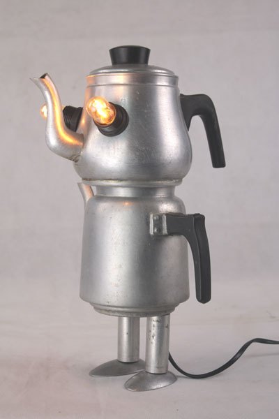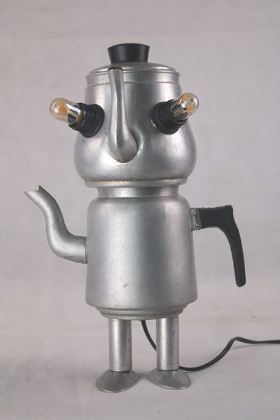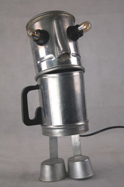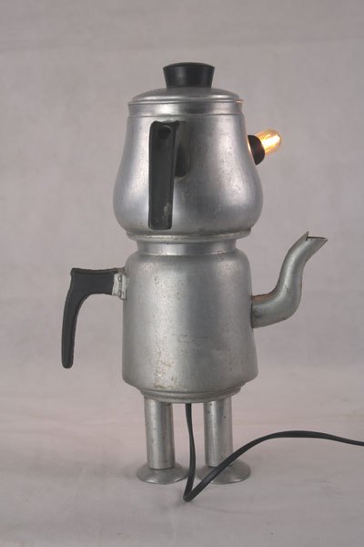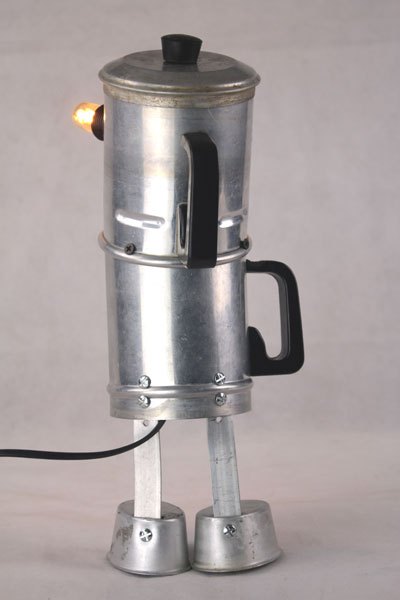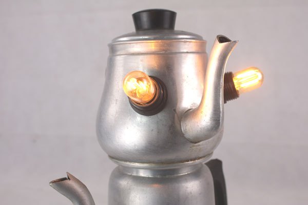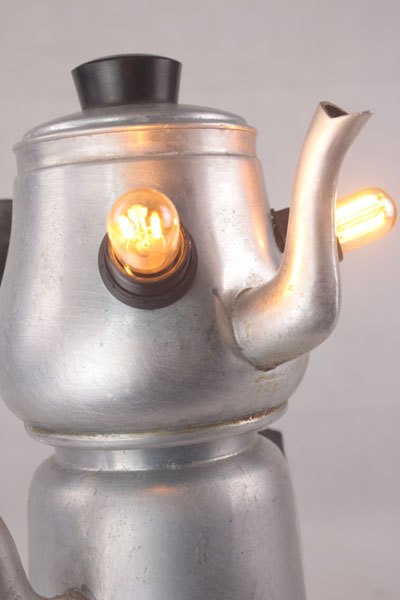 Bouilloire à trompe, personnage par assemblage d’objets en aluminium.