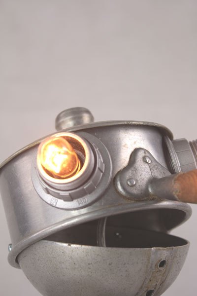 Aluminium Devil, assembly of a flask, a kettle, moulds, hooks and handles.