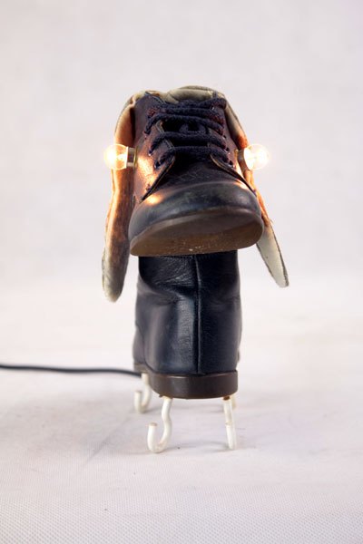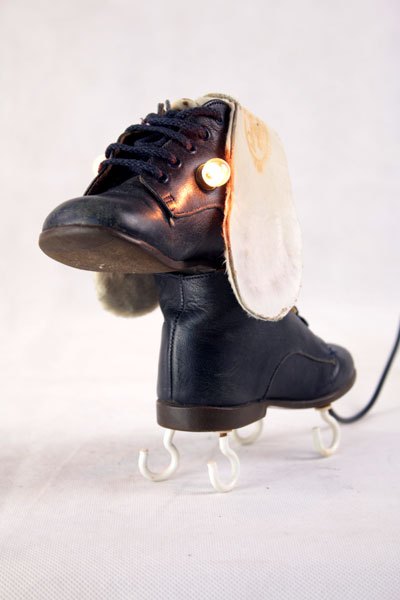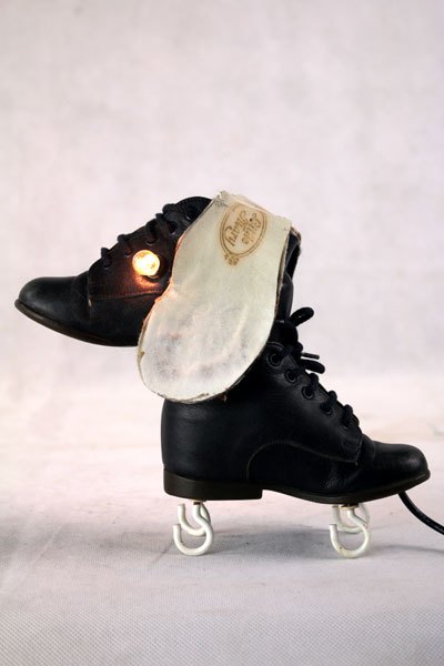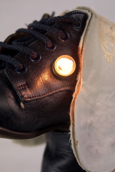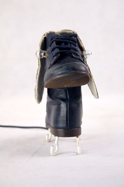 Sculpture dog shoes assembly of a pair of baby shoes, soles and hooks.