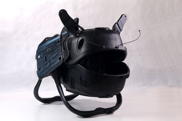 Créature en tuyau d’arrosage sur une structure de chaise avec du pneu de VTT