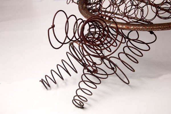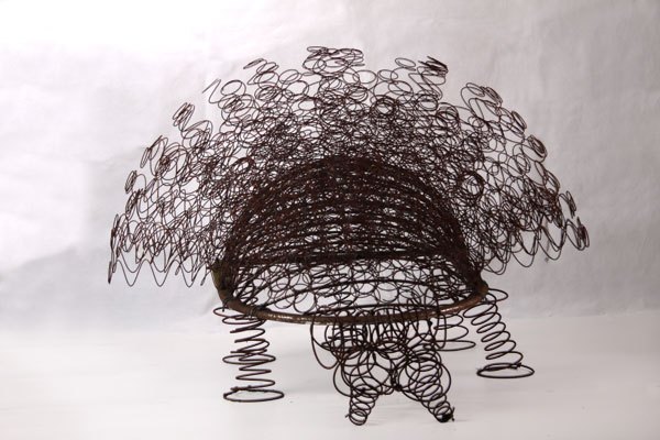 Hérisson en ressorts de matelas et sommiers, assemblage sur une structure de fauteuil.