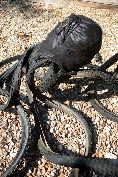 Composition: pneus de VTT, sac à main.