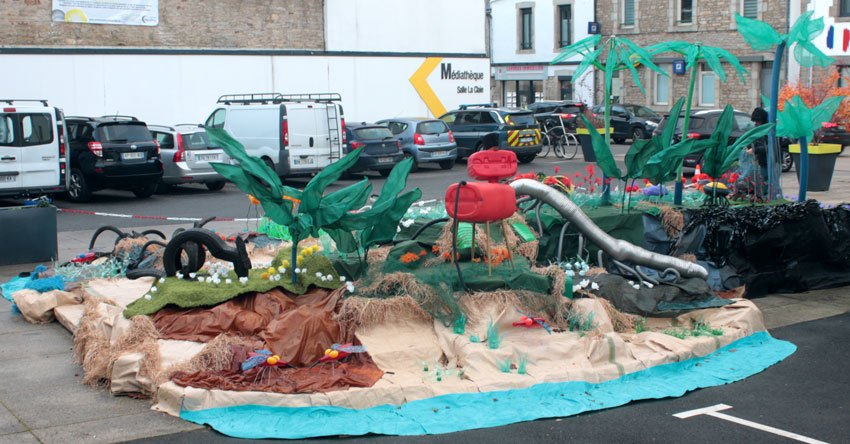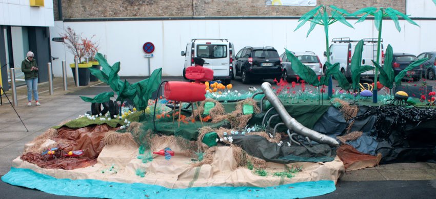 Ouest France, le 6/11/2021: « EN IMAGES. À Saint-Jean-Brévelay, Angèle Riguidel va installer une île géante de déchets »