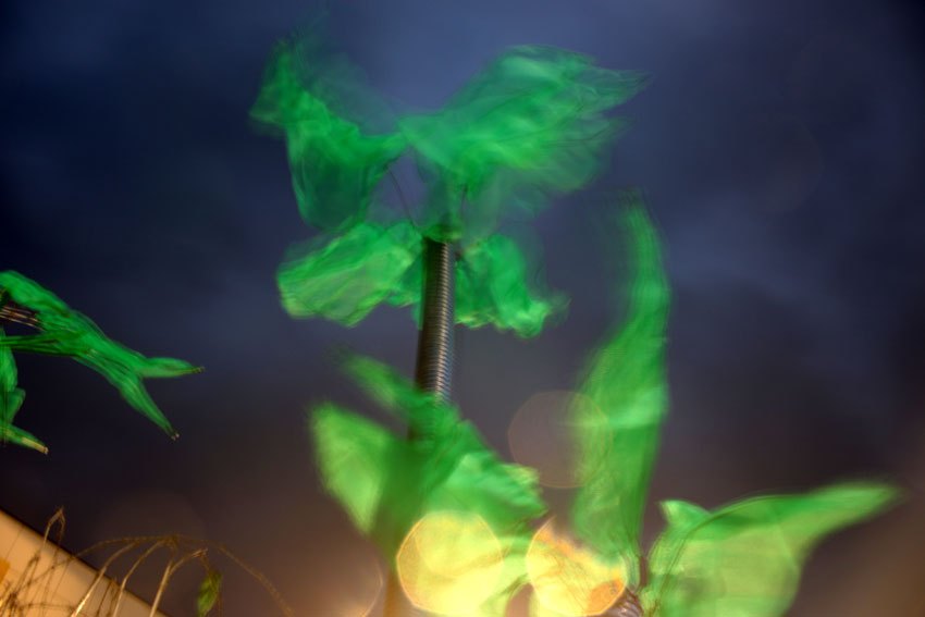 Beaucoup de plastiques ont été utilisés, pour leur couleurs, leur résistance au temps et intempéries. Le paradoxe, ils sont à usage unique malgré tout ça. Les objets récupérés sont géométriques, lisses. Par le détissage, la transformation à chaud, l’accumulation on passe à des matières molles qui s’approchent de la création naturelle. Les déchets ne sont pas cachés mais transformés ou recomposés.