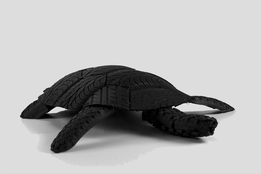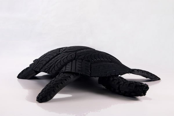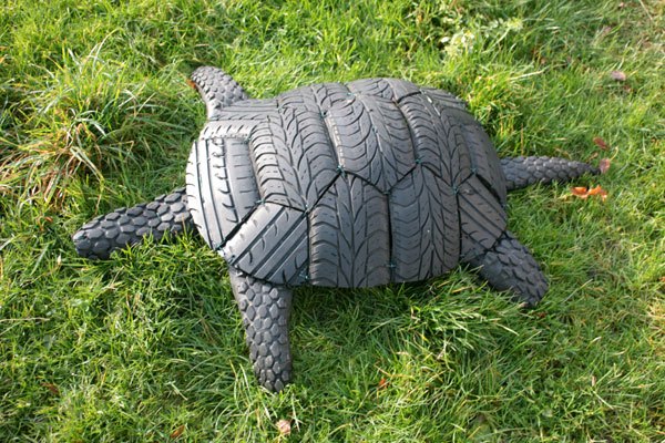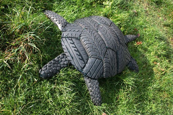 Tortue en pneu, assemblage de gomme caoutchouc de voiture et de VTT.