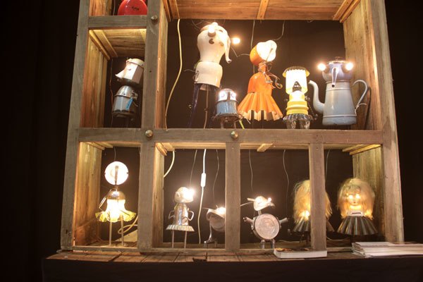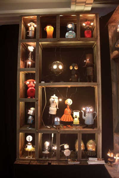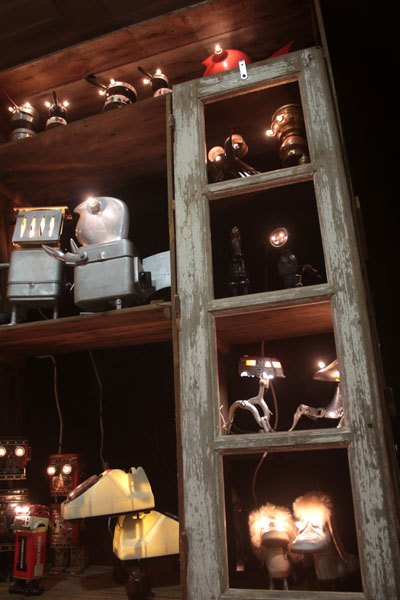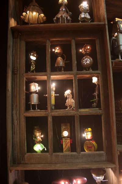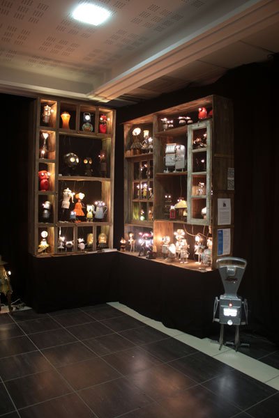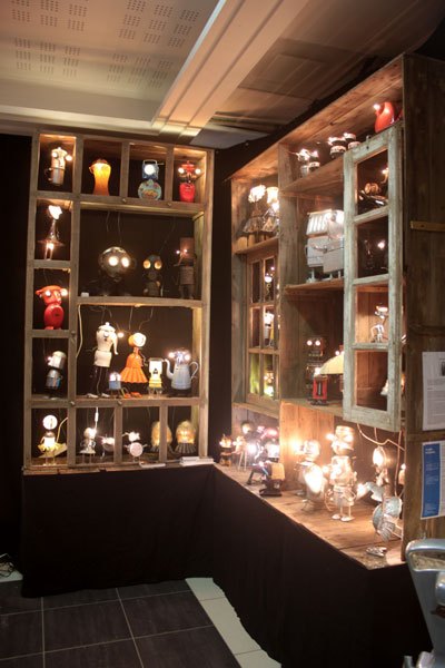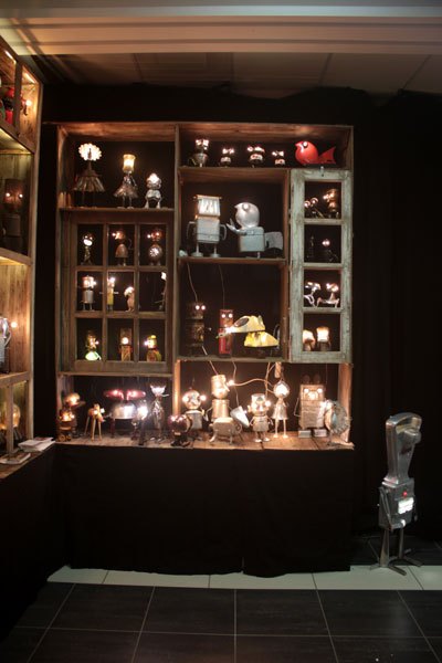 Cabinet de curiosités avec les pièces lumineuses, chaque pièce est réfléchie et construite avec les objets qui la compose.