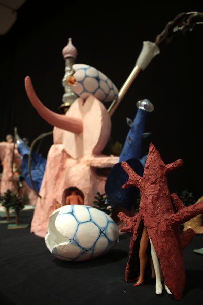 Les créatures en pneus, bouteilles, gaines, casques, aspirateurs, tuyaux peuplent cette île, les serpents ont déjà choisi leur proies.