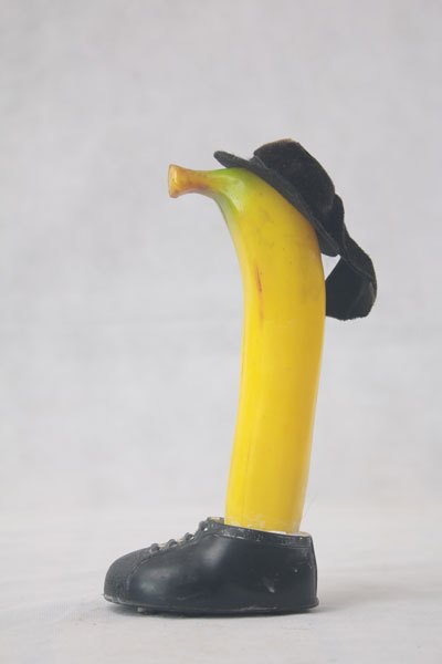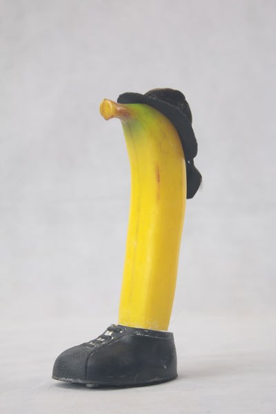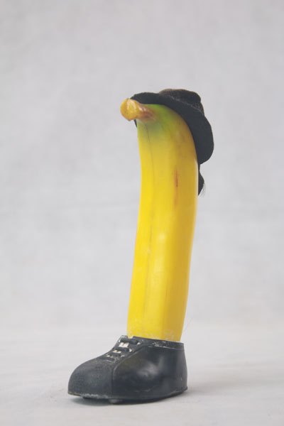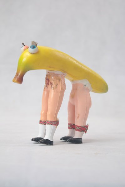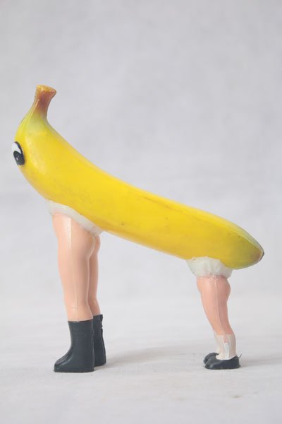 Composition: banane décorative en plastique, jambes de poupée, yeux de jouets.