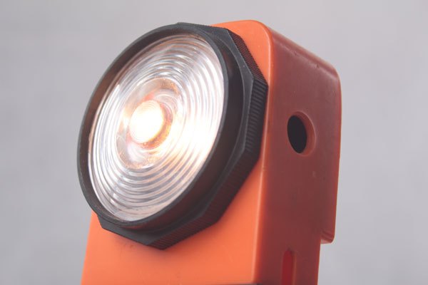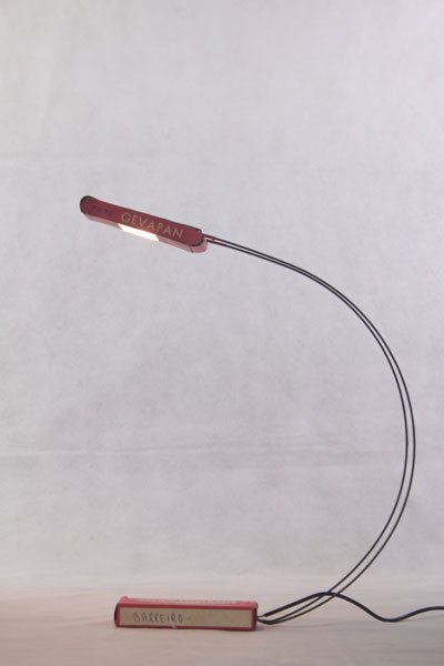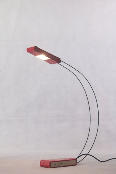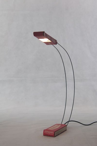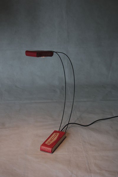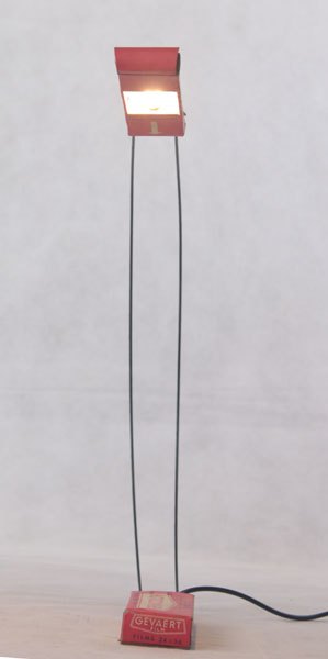 Lampe crée avec une boite de film, détournement, recyclage, lampe de bureau,