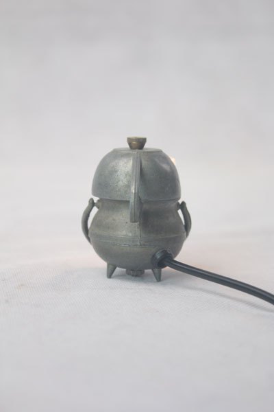 Composition: lampe de voyage, boite de colliers de plomberie « Franc ».