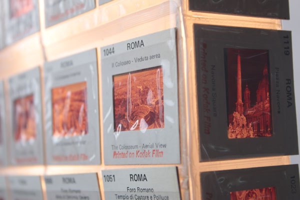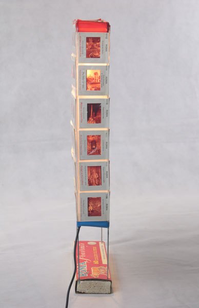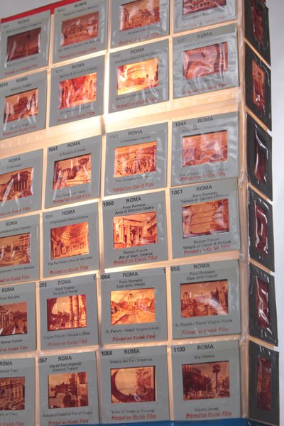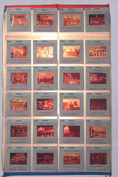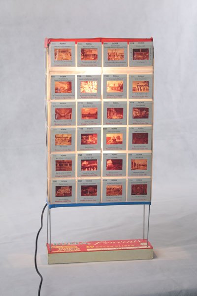 Recyclage boite de diapositives lumineuse vintage, détournement de tous les éléments, objet souvenir, populaire, photos de Rome