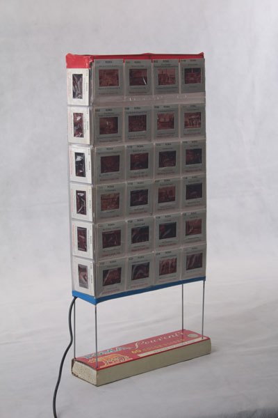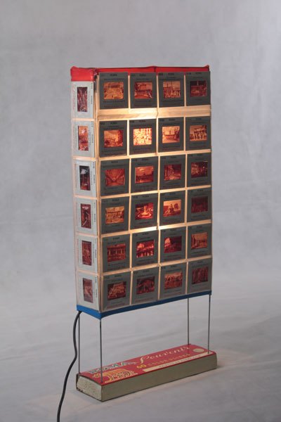 Recyclage boite de diapositives lumineuse vintage, détournement de tous les éléments, objet souvenir, populaire, photos de Rome.