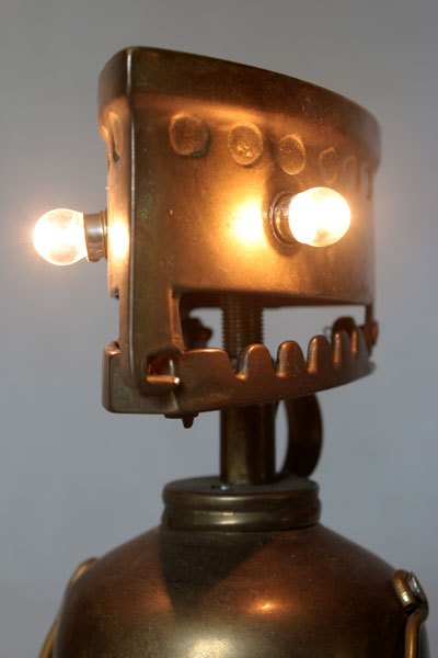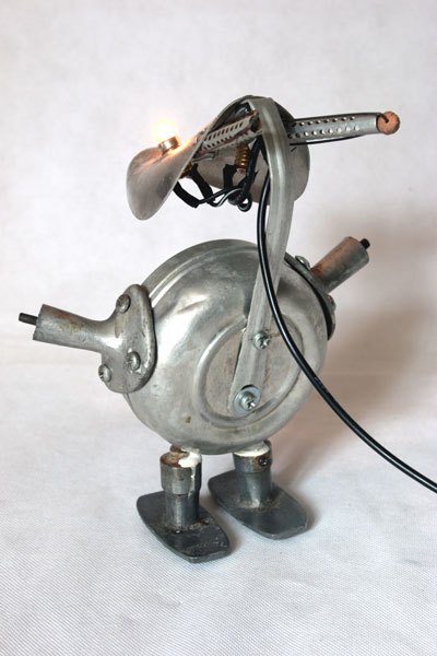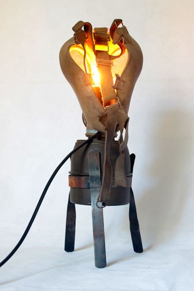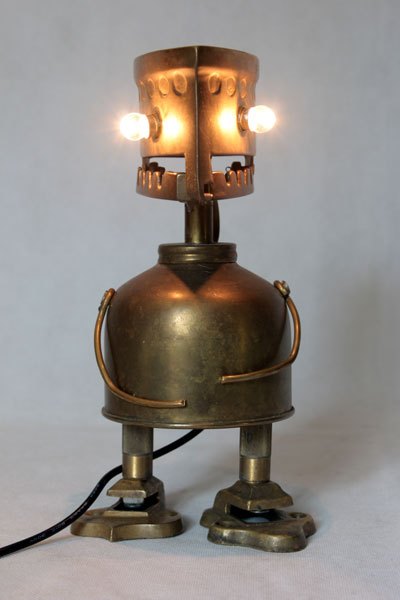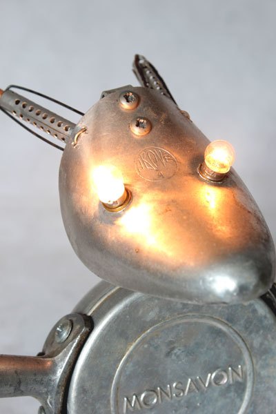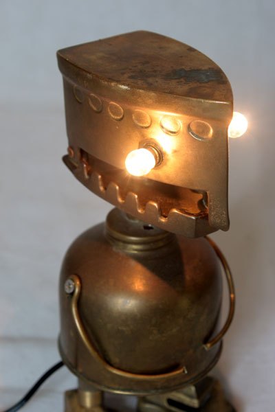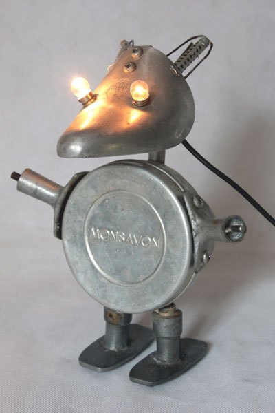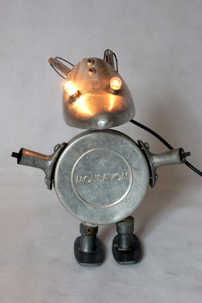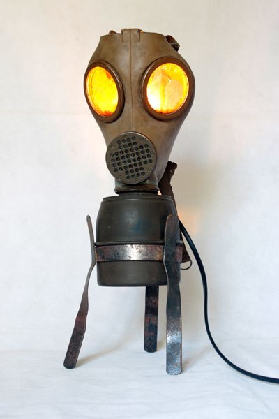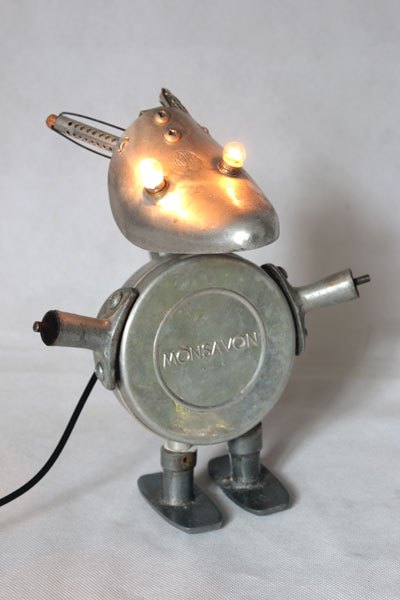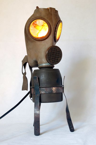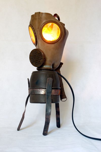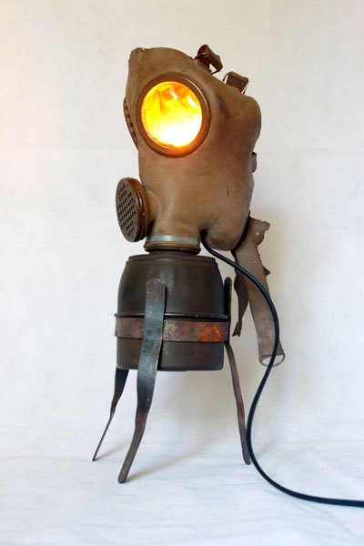 Maskagaz détourné, Personnage lumineux, recyclage, assemblage d’objets curieux.