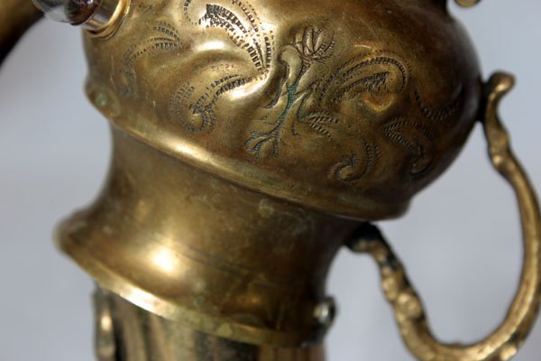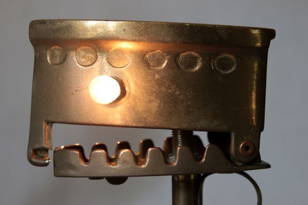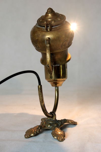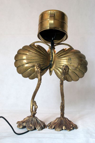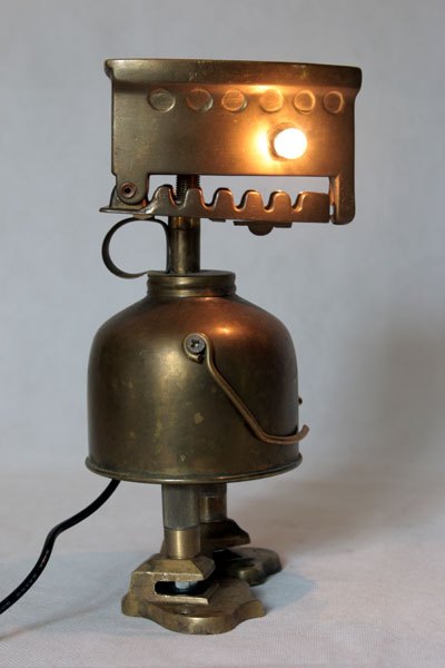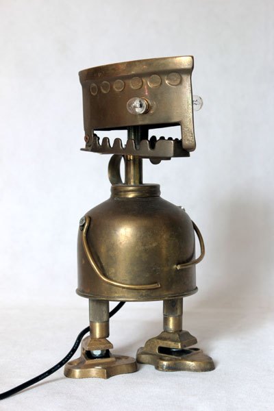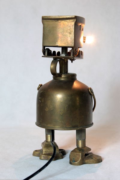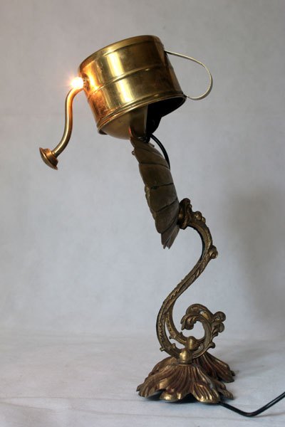 Brass figure with iron decorative box, spray, hooks parts. Lamp recumbent, diversion of rustic objects.