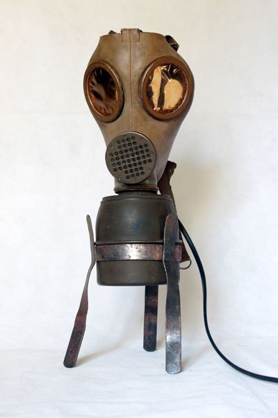 Composition: masque à gaz de la 2nd guerre mondiale, cartouche, trépied .