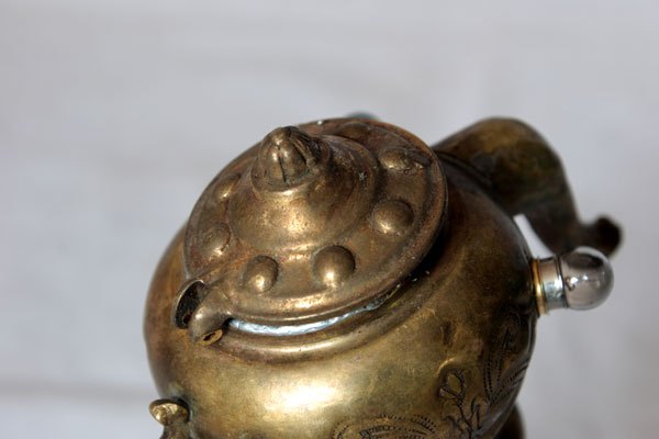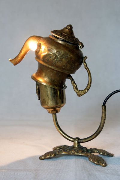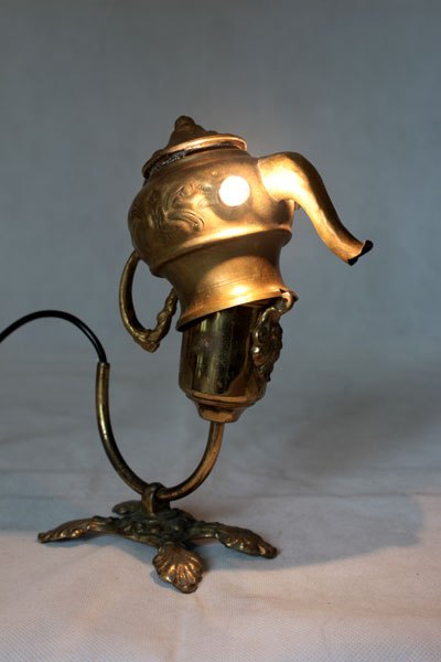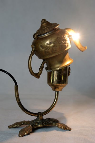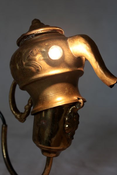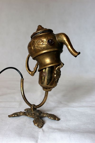 Animal oriental en laiton. Assemblage art de la table oriental, mini théière. Détournement lumineux.