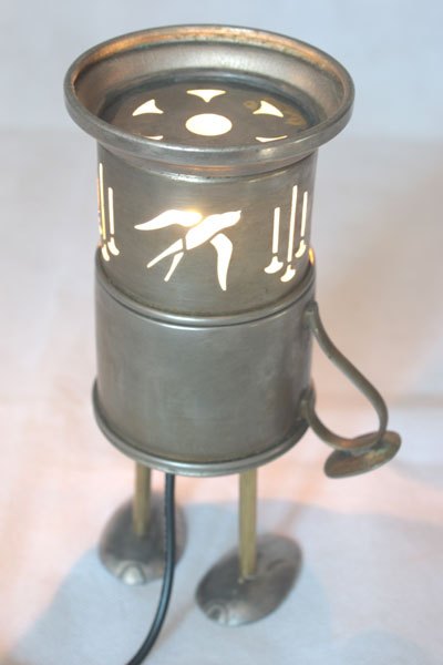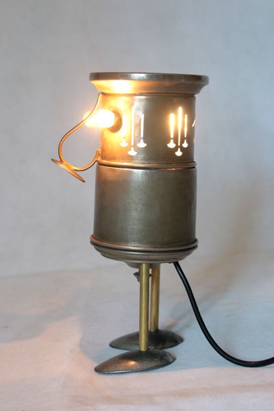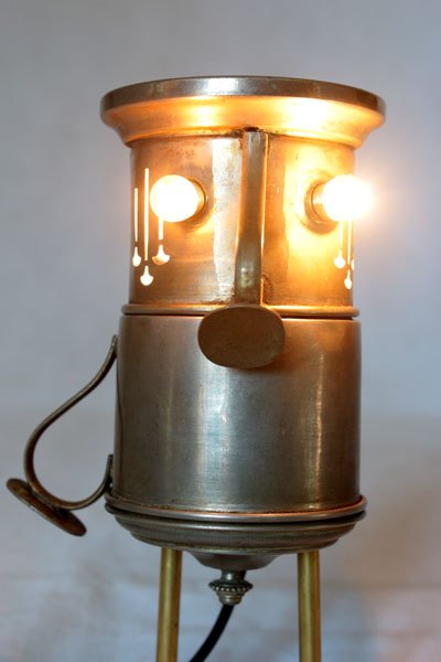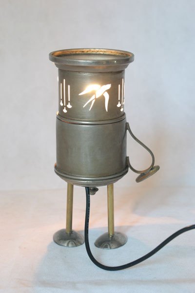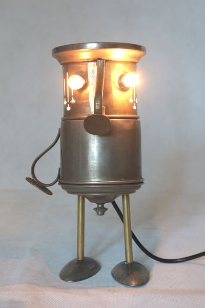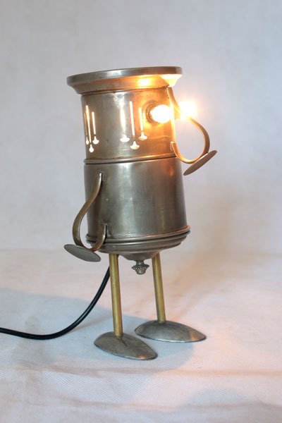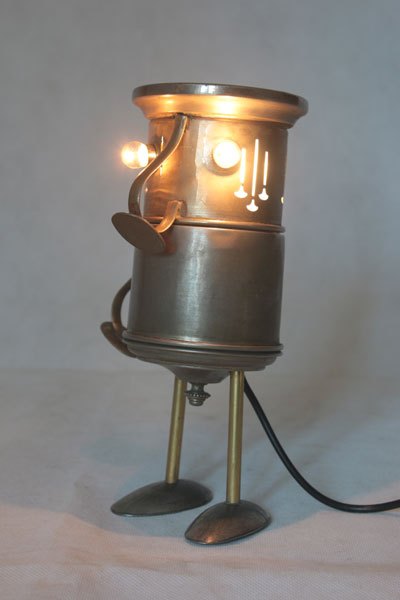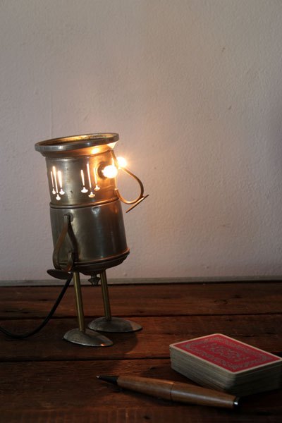 Matières: métal patiné, laiton, plastique.