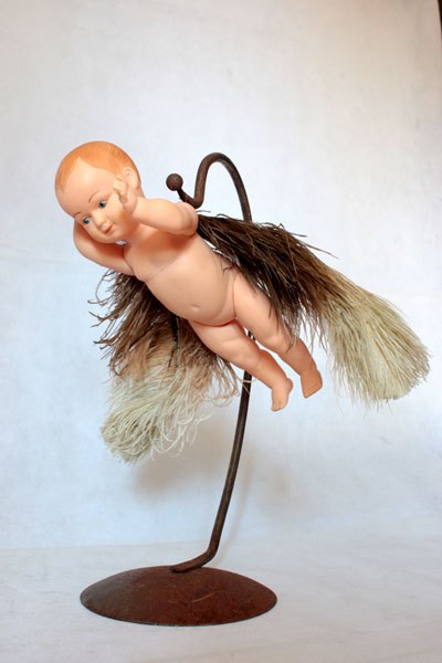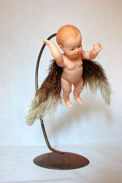 Winged baby, poetic assembly on a steel support.