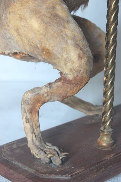 Chimère renard ailé, empaillé et dépoilé, avec plumes et verrerie.