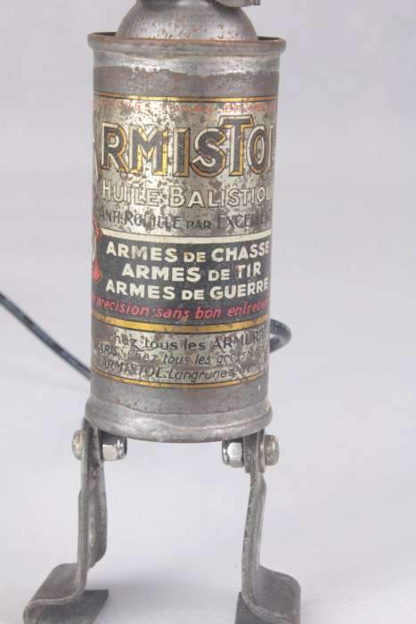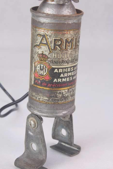Composition: boite ancienne « Armistol, huile balistique », boite « câble au louis d’or », pièce de vélo.