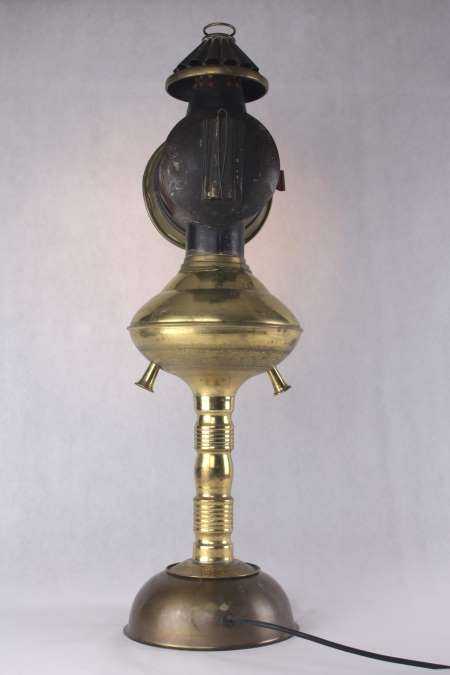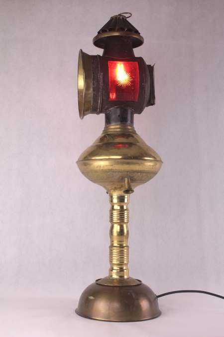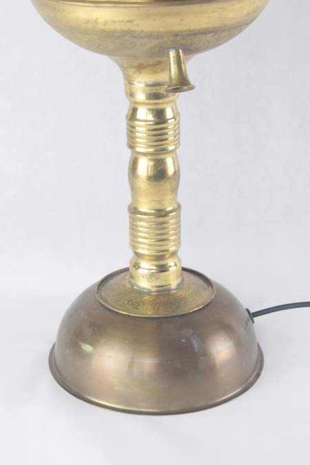 Assemblage lumineux avec une grosse lanterne, un morceau de narguilé et un saladier.