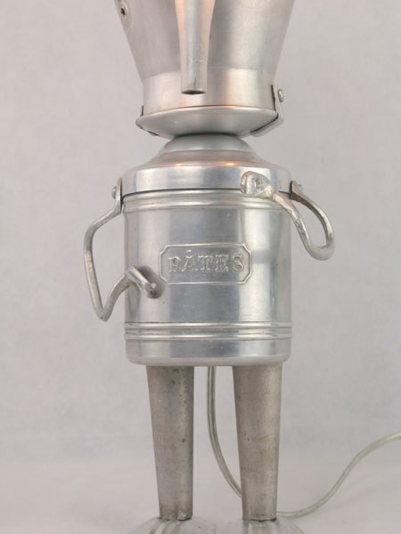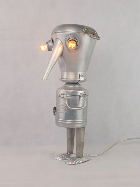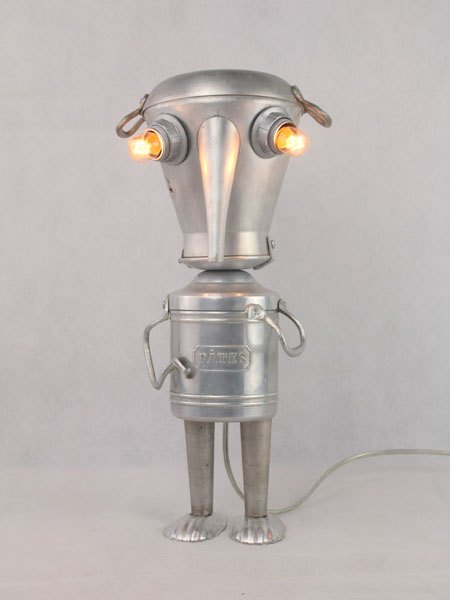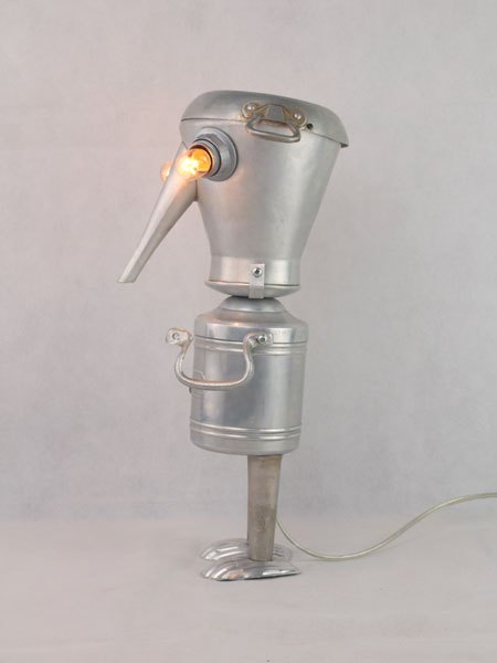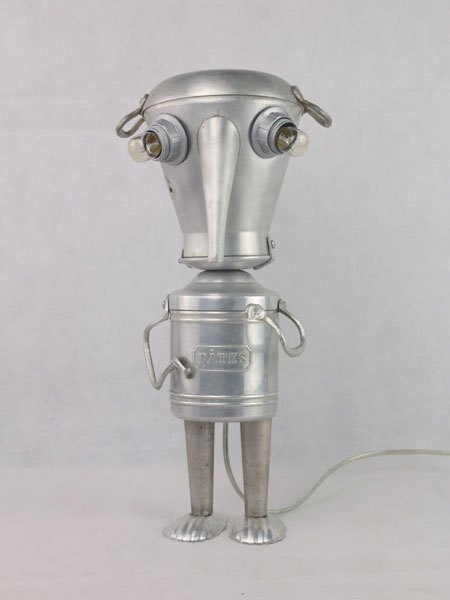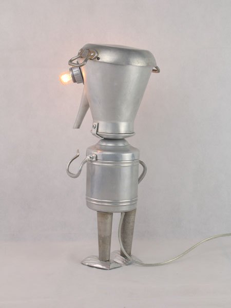 Kitchen aluminum sculpture. Assembly: coffee maker, dish, handles, pasta pot, madeleine moulds. Recycling, folk art, diversion.