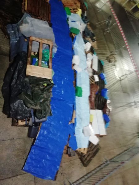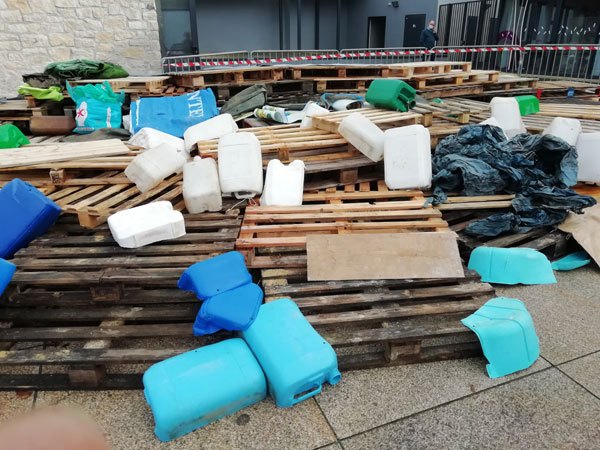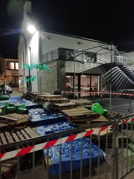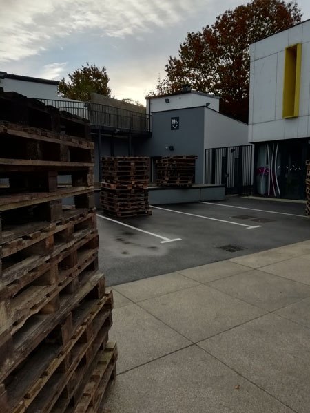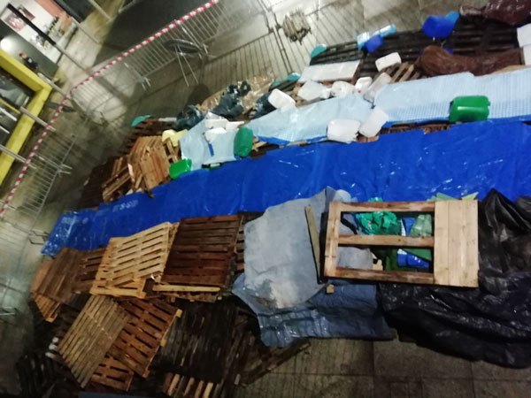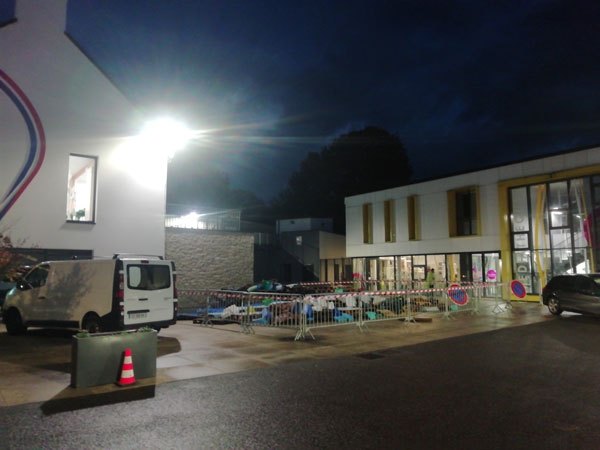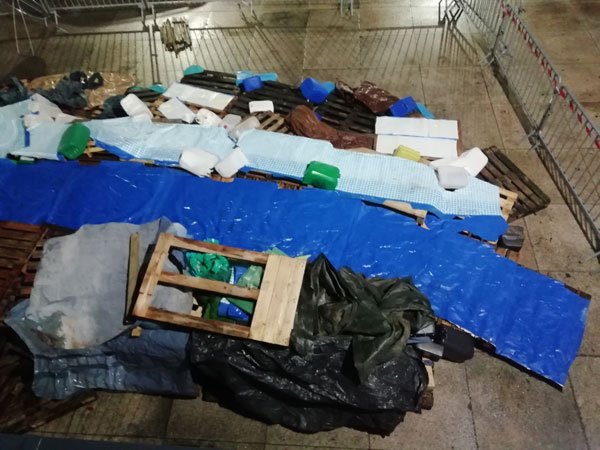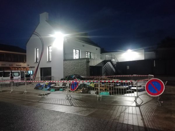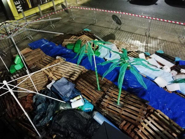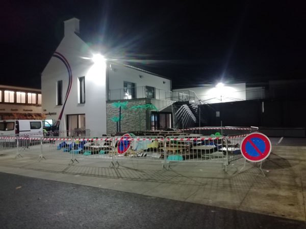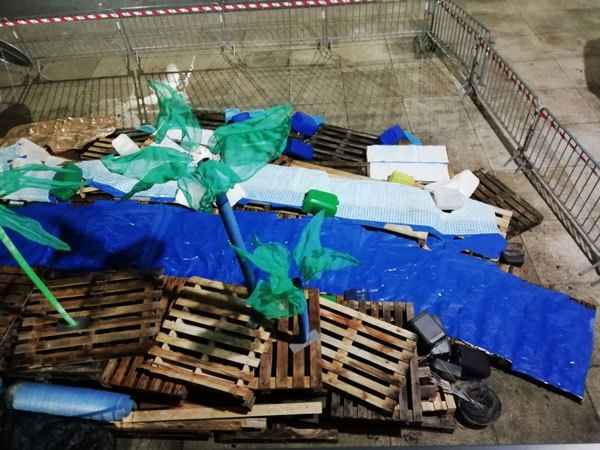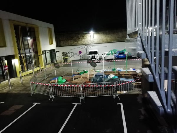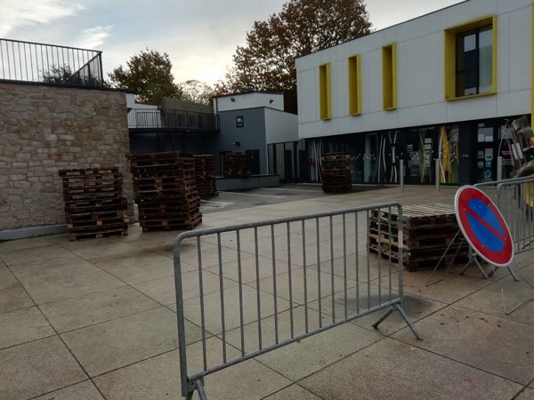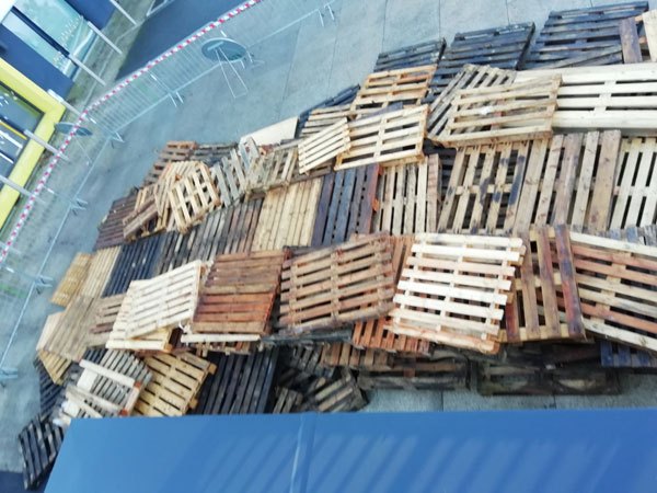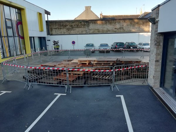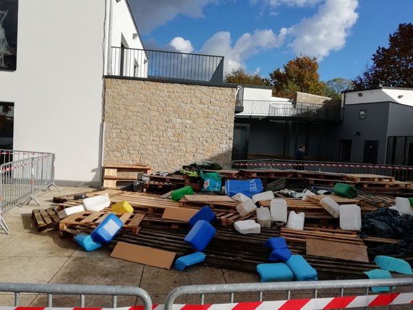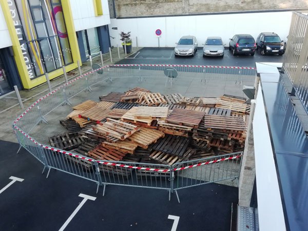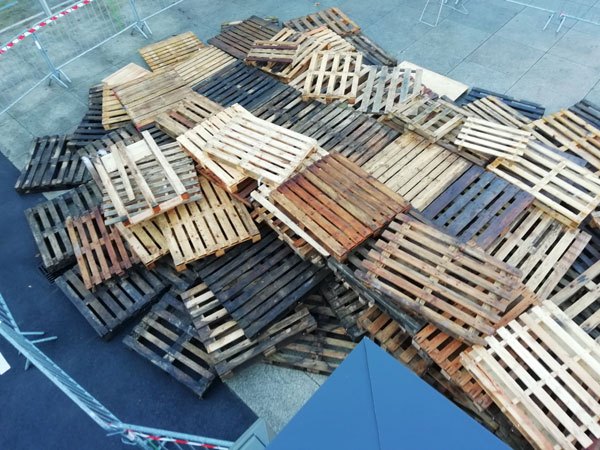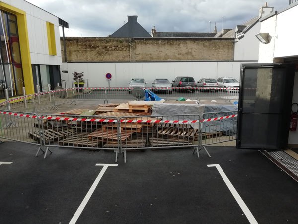 Construction de l’installation « la 60 eme île », du 1er au 26 novembre 2021. Assemblage de matériaux récupérés auprès des entreprises locales, des déchetteries du secteur, des habitants. Performance de recyclage.
