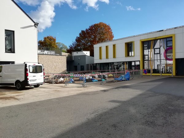 Exposition novembre 2021 dans l’espace public des créatures de recherche pour la résidence. Saint-Jean-Brévelay, communauté de commune centre Morbihan.