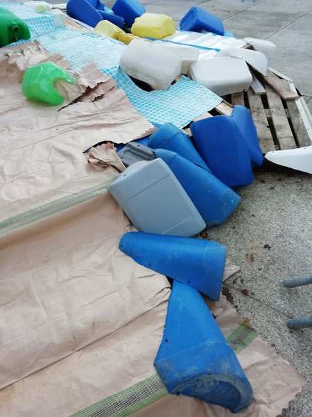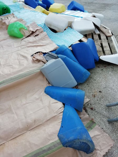 Recherche des créatures : à pattes, rampants, à plumes, écailles… avec des déchets encombrants, ménagers. Recherche de techniques pour tenir dehors aux intempéries.