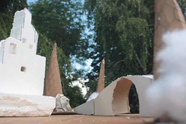 Préparation d'exposition, les constructions Boschiennes, suite de l'installation "le jardin des plastiques". Visibles en septembre à la Mairie de Tourville-la-Rivière (Normandie). Photo @simon_archibald_pro