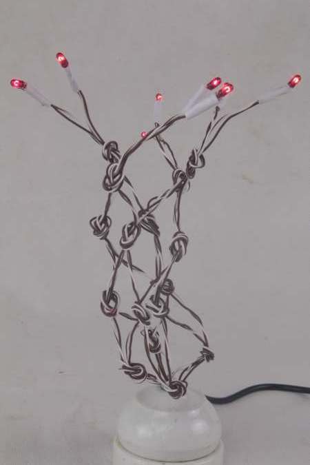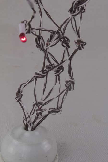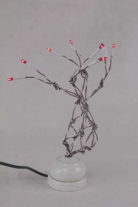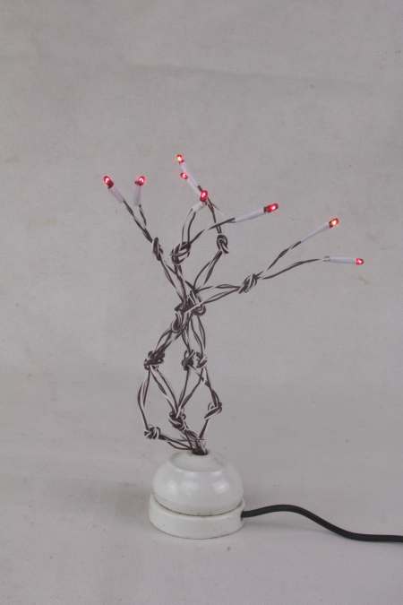 Année de création: 2026 Dimensions : 18 x 14 x 14 cm Poids : 0.2 kg Alimentation : 12 V 8 lucioles rouges Matières : Porcelaine, fils conducteurs Description : Assemblage de fils électriques et boitier en porcelaine.