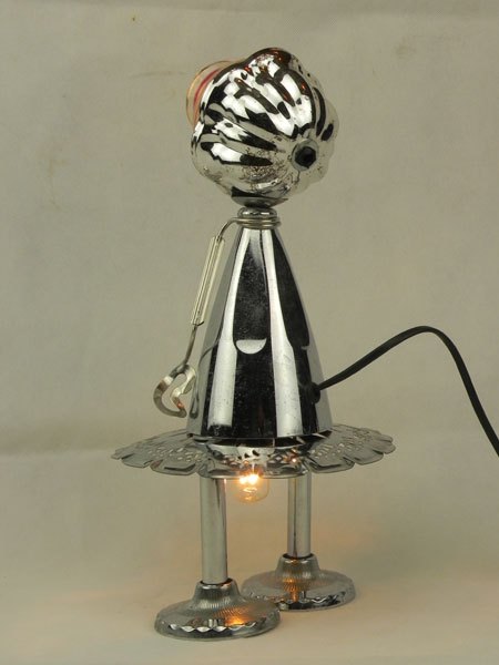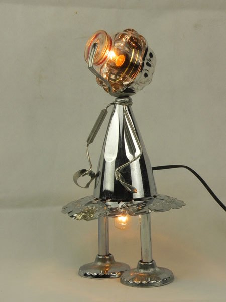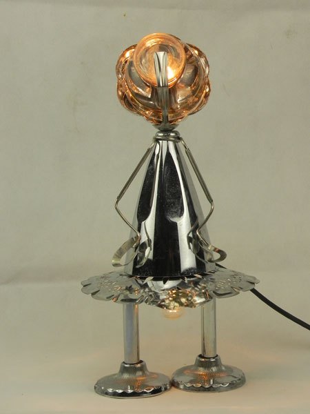 Sculpture light assembly metal. Composition: sports cup, glass cup, towel rack supports, presentation plate, snail claw.