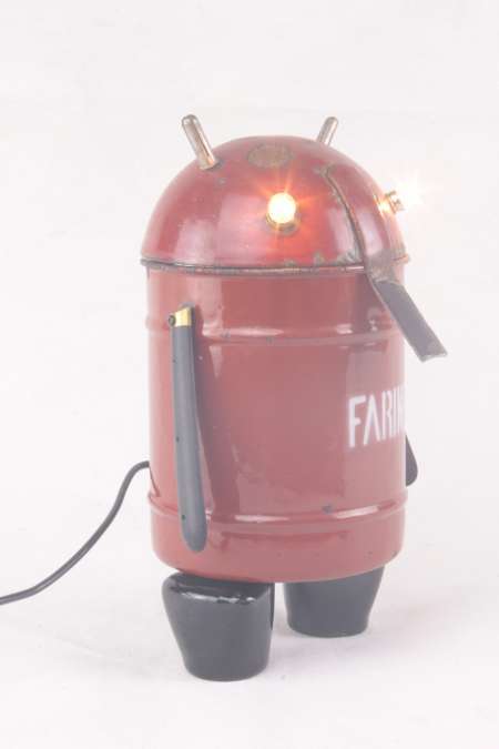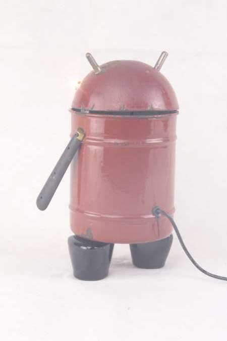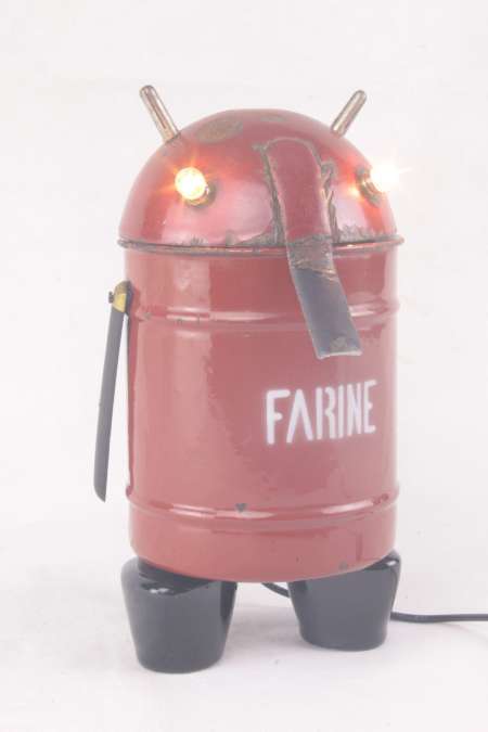 Description : Assemblage d’une boite en émail, une louche, manches de couteau, poignées en porcelaine et connecteurs.