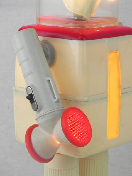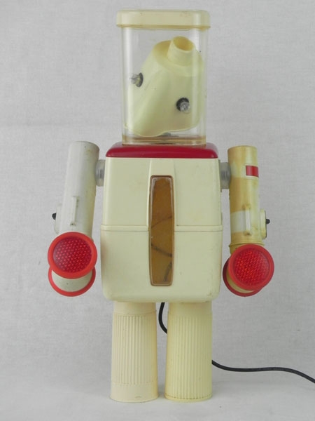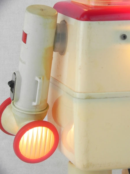 Robot light boxes. Assembly of 2 pots, 2 flashlights, 2 inhalers, inhalation mask. Cream and red.