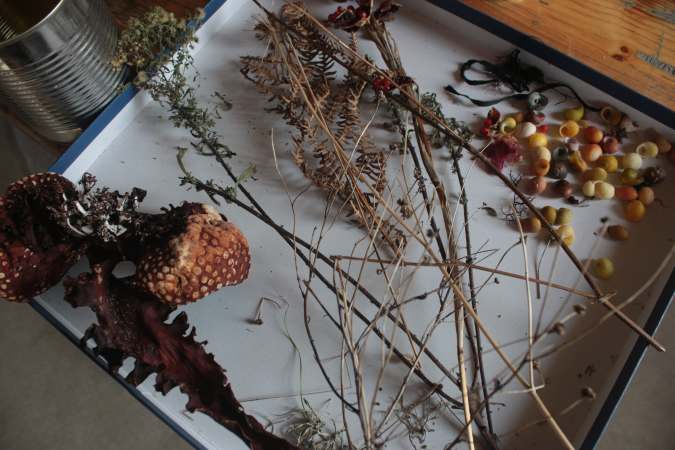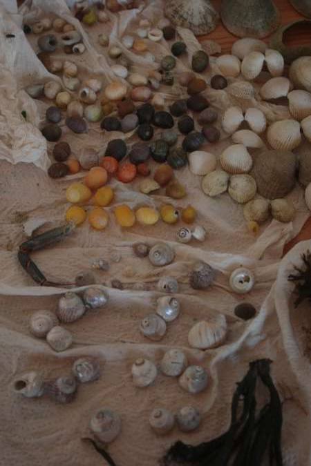 J’ai tout de même prélevé quelques algues, coquillages et fragments naturels pour expérimenter des assemblages sur place.