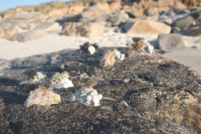 J’ai tout de même prélevé quelques algues, coquillages et fragments naturels pour expérimenter des assemblages sur place.