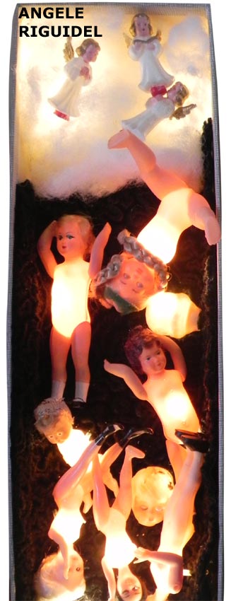 Sculpture assemblage d’objets. Personnages lumineux avec des ailes. laiton et rouge. Oriental, lampe.